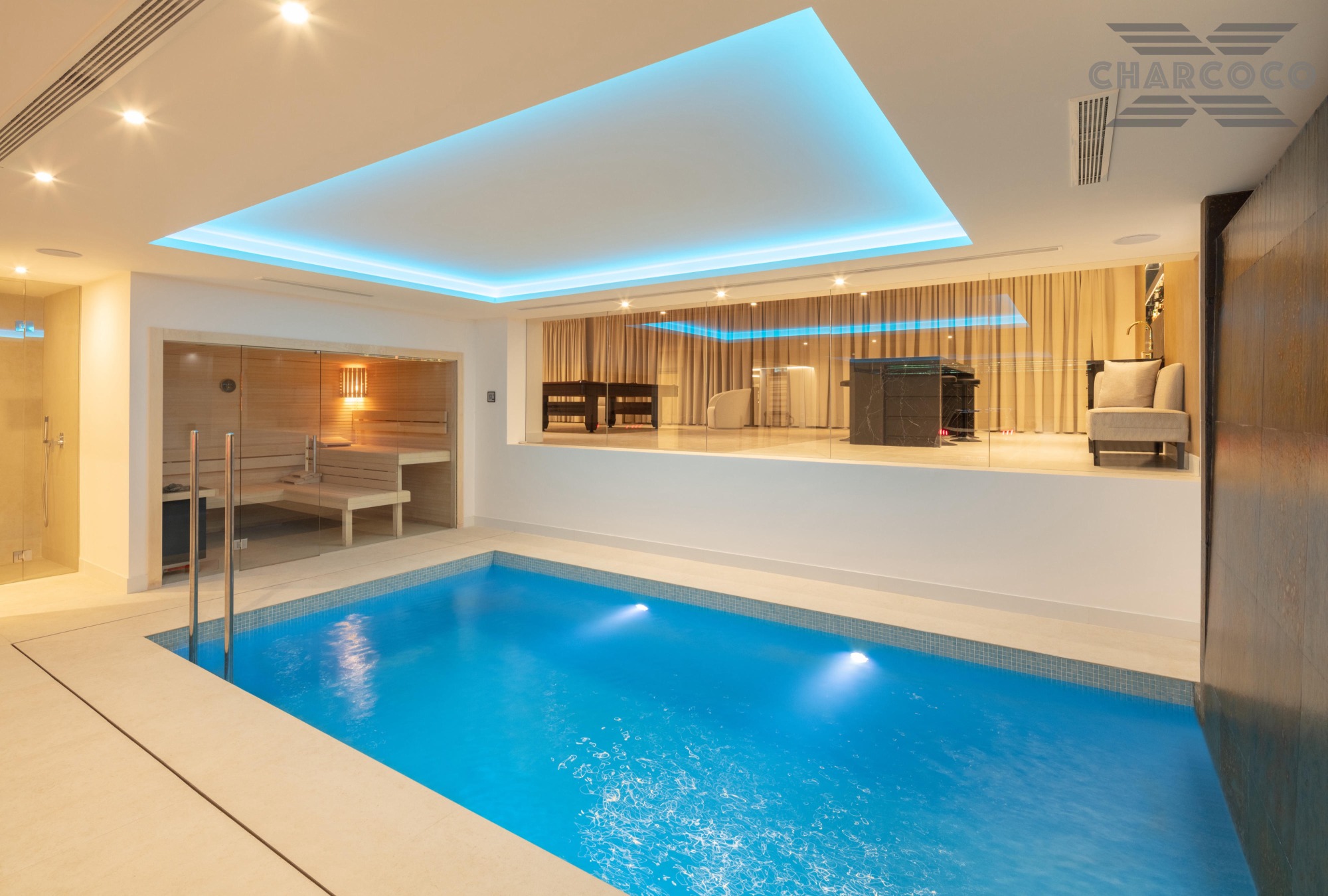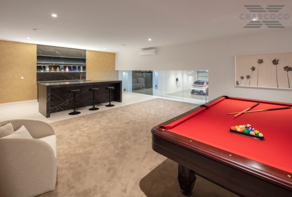 The basement level is an entertainers delight, hosting a TV lounge and snooker area, an indoor heated pool, sauna and a fully equipped gym which can easily be converted into an extra bedroom if necessary. A car charger has been integrated in the garage.