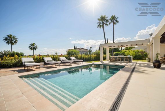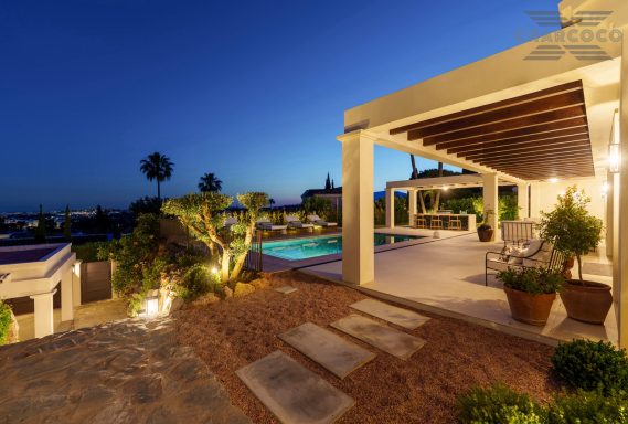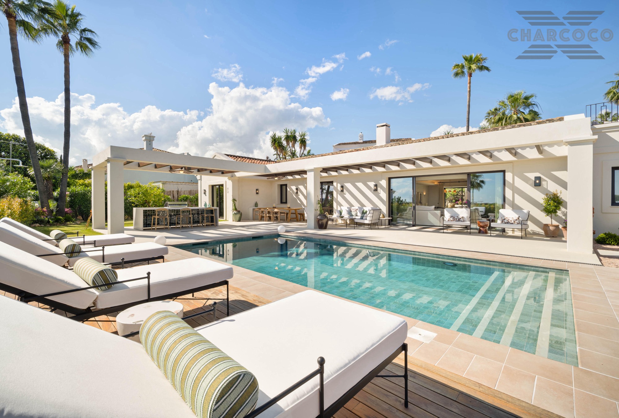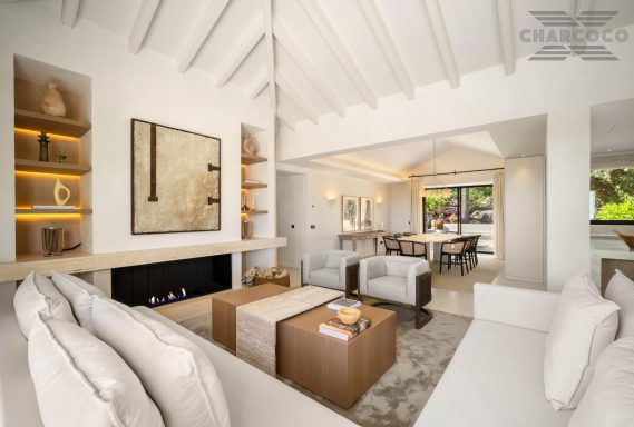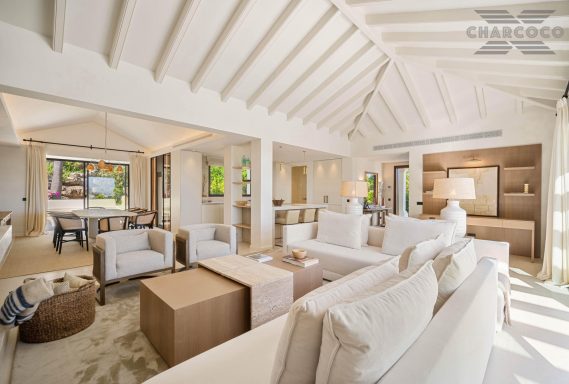 Welcome to Casa Olivo, a beautifully reimagined single-level villa nestled in the heart of Nueva Andalucía, just minutes from the renowned Los Naranjos Golf Course. Designed and developed by Casas Fintech, this exquisite 4-bedroom home merges Mediterranean elegance with contemporary comforts. Set on a lush, elevated plot, the villa offers privacy, tranquility, and breathtaking views across the valley to the sea, all while being moments away from Marbella’s best golf, dining, and beach experiences.