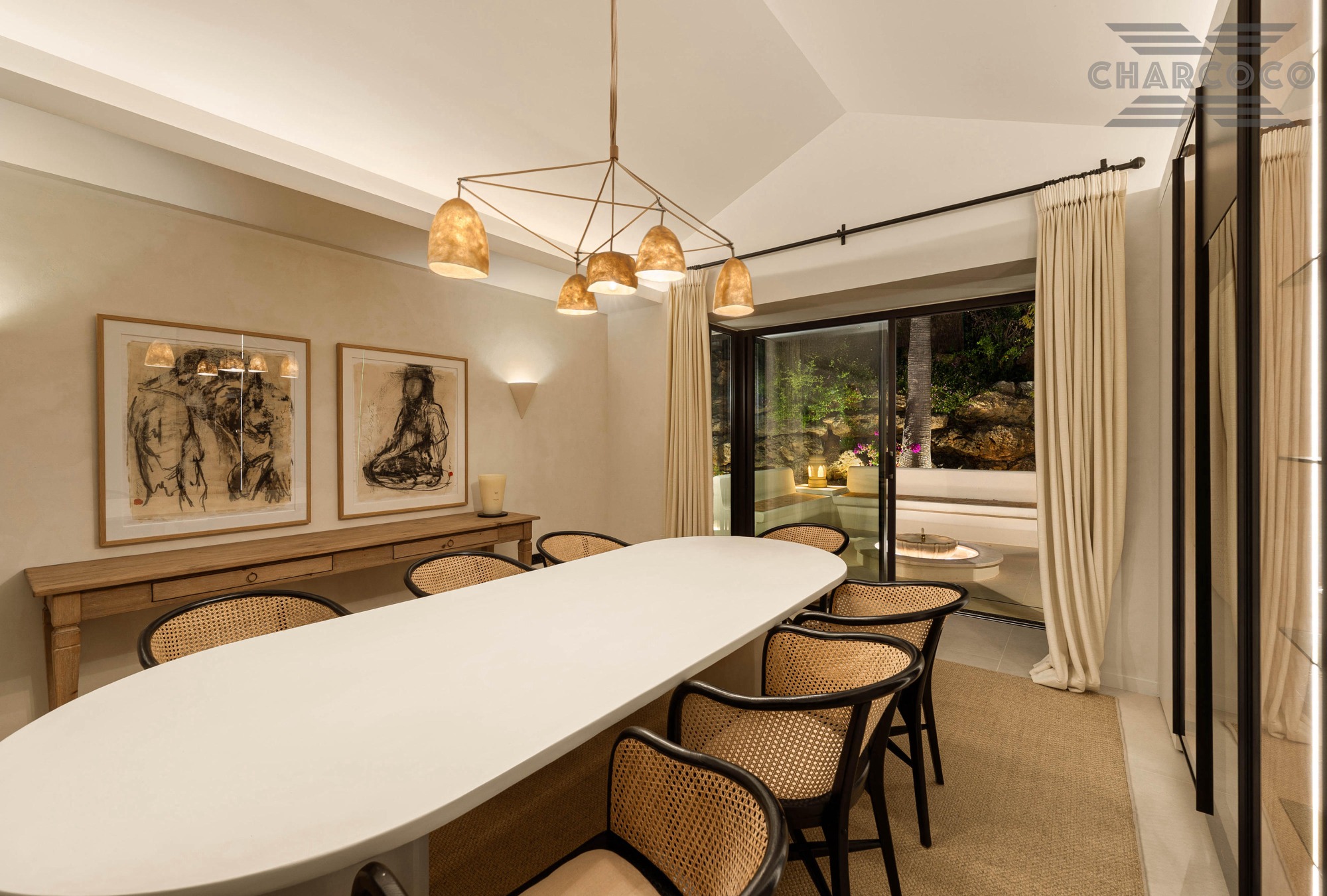 Outside, manicured gardens surround multiple alfresco living zones, ideal for entertaining or unwinding in complete seclusion. A rooftop terrace captures stunning views, while a peaceful courtyard with a water feature offers an intimate retreat. With four spacious bedrooms, including a serene master suite with garden access, and luxurious amenities throughout, Casa Olivo is a rare fusion of sophisticated living and relaxed coastal charm in oneof Marbella’s most desirable location.