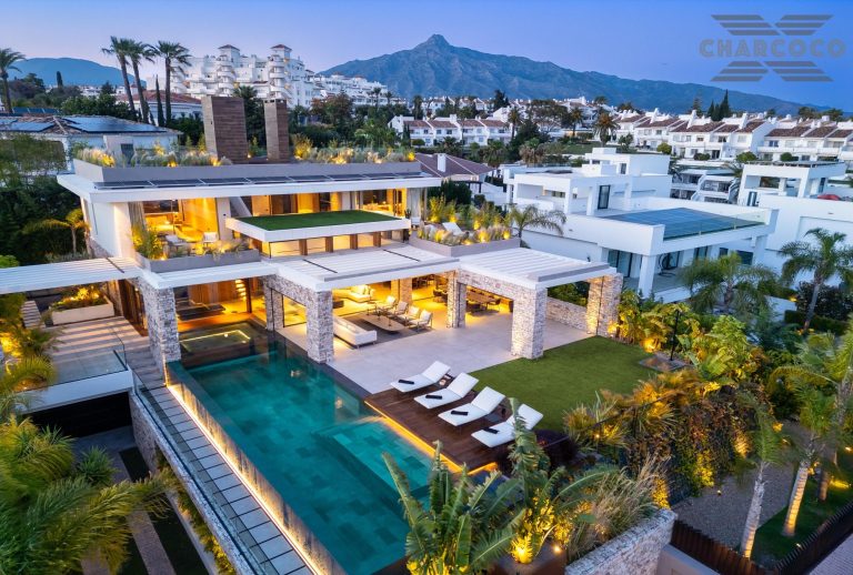 Located within the esteemed Rocio de Nagüeles, Villa Celestia stands as a representation of contemporary luxury living, just a stone's throw away from Marbella's renowned Golden Mile. Its enviable location ensures easy access to 5-star amenities, while exuding an aura of exclusivity. Spanning an expansive plot, the villa boasts meticulously manicured gardens and a private pool, providing an idyllic sanctuary for both relaxation and entertainment. Expansive terraces allow for outdoor dining and leisure, while the lush landscaping enveloping the property guarantees privacy.