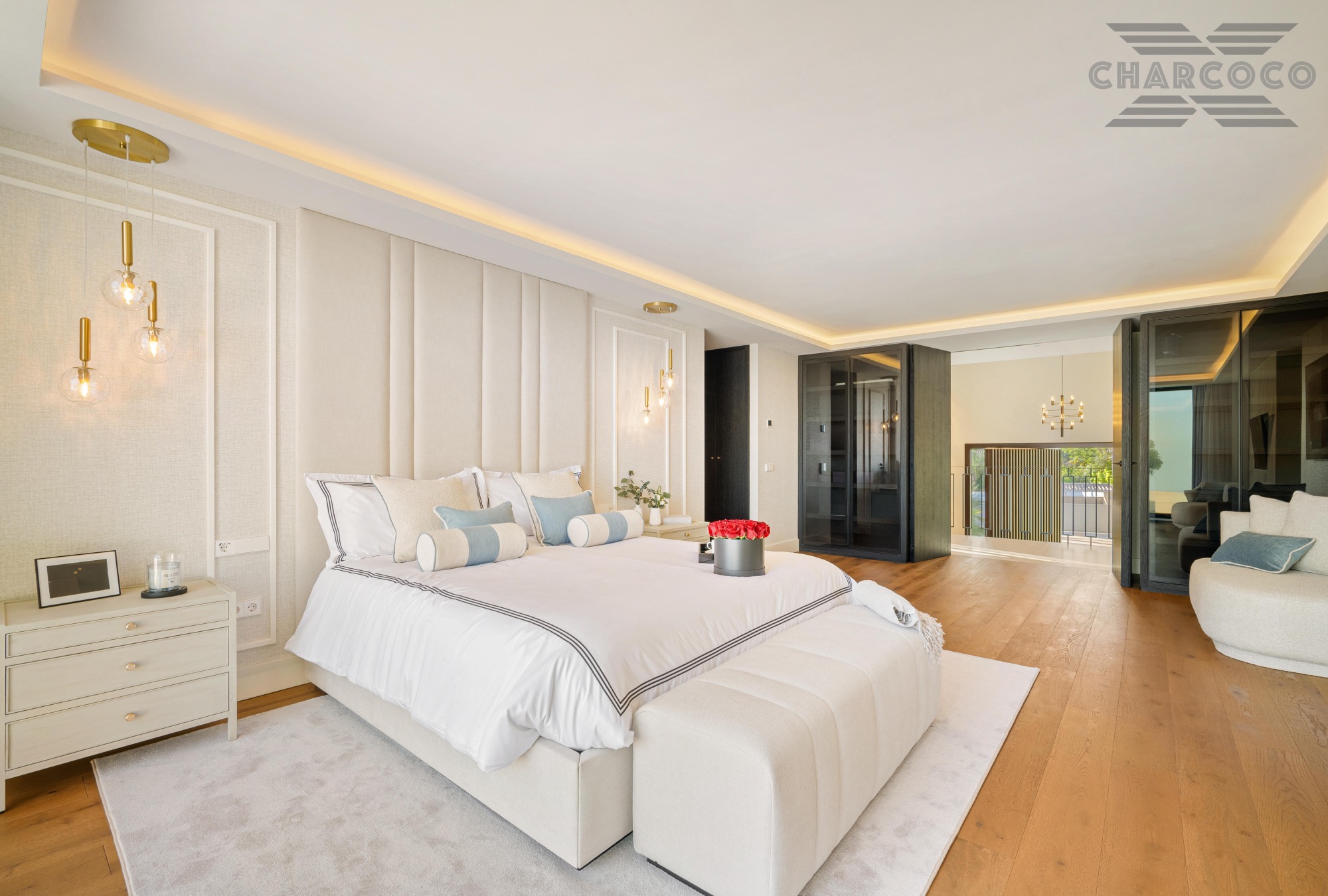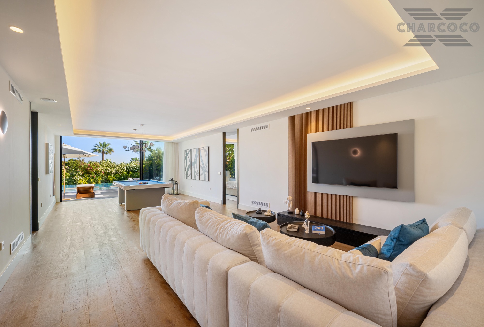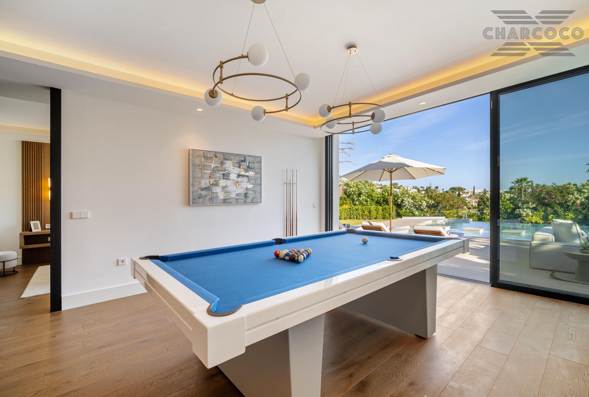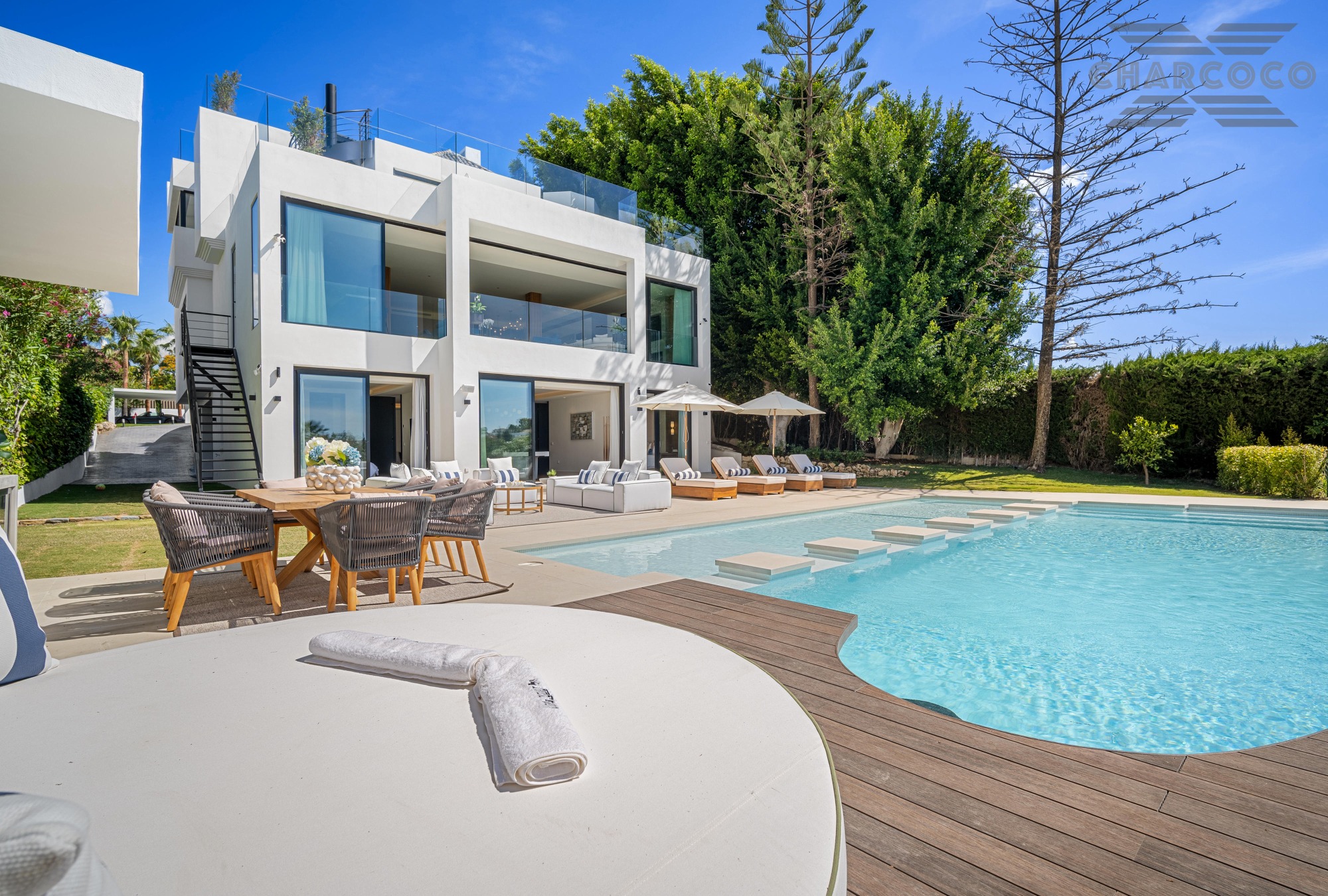 Wide-ranging windows effortlessly direct you towards the terraces and infinity pool surrounded by tropical trees and mature gardens. Villa 2000 comes complete with 6 distinctive bedrooms; the elegant master suite compromises the entire first floor with large walk-in closets, an elegant marble bathroom with an rounded bathtub, an office room and access to the spacious private terrace offering beautiful sea views. Enjoy one of Marbellas most distinctive properties on the market, from its decked out rooftop terrace, complete spa and private gym, indoor pool, cinema room and its own putting green area. The villa includes an elevator, a garage fit for 2 cars and a carport fitting 2 further cars.
