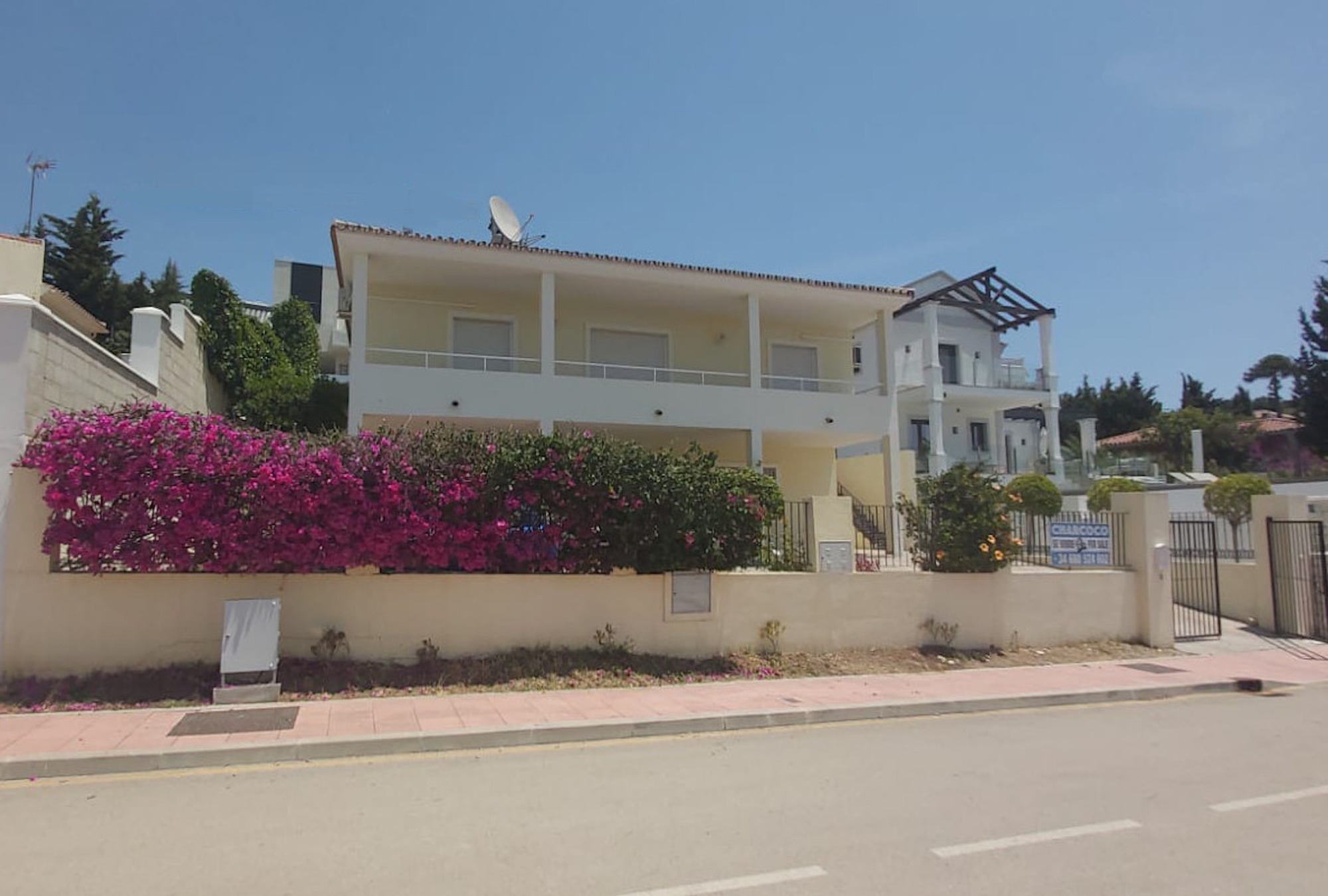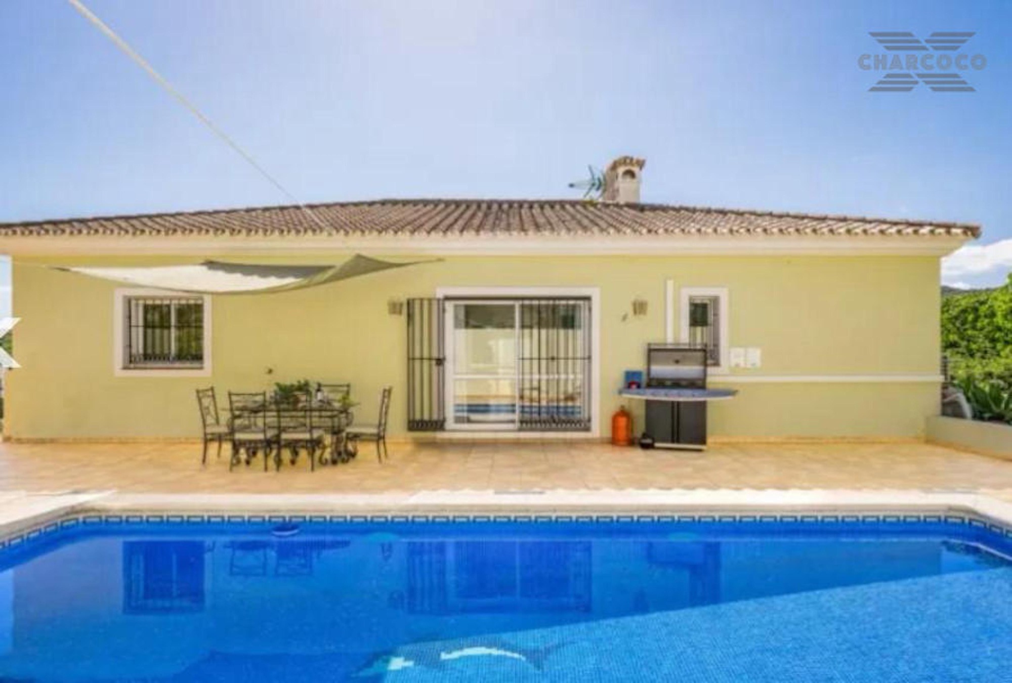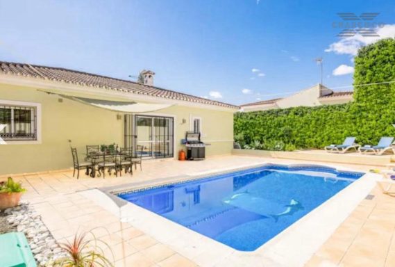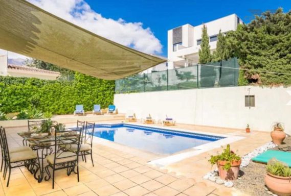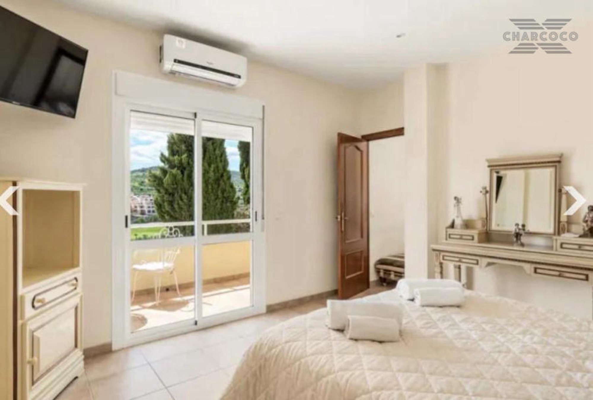 Villa Cuba 26 is in a prime location within the popular area of Valle Romano, which in recent years has seen property prices almost double. Valle Romano is just a 7 minute drive to Estepona Town Center, and just 30 minutes from Marbella, with Malaga airport just 80km and Gibraltar airport at 40km. It is located in a residential area that is next to an area in full urban expansion, with the new "High Resolution Hospital" of Estepona, commercial area with supermarkets, restaurants and pharmacy a few minutes away. It has a fantastic southwest orientation, so it enjoys long hours of sunshine. Upon entering the plot, we find a large parking area, up the stairs on the side of the house, we find a large solarium with a large private pool with salt chlorination, the main entrance of the house is located at this height of the house, accessing the property we find a spacious living room with a lovely fireplace that makes the room a very cozy place, next to the entrance, if we turn left, we find its spacious fully equipped kitchen with very good qualities and finishes. Upstairs we have 2 of the 4 bedrooms, each bedroom is located on one side of the living room both are spacious and double, with access to the large terrace that enjoys beautiful panoramic views of the golf course and partial sea views.