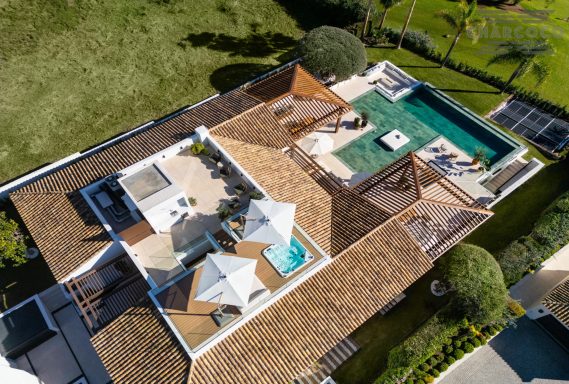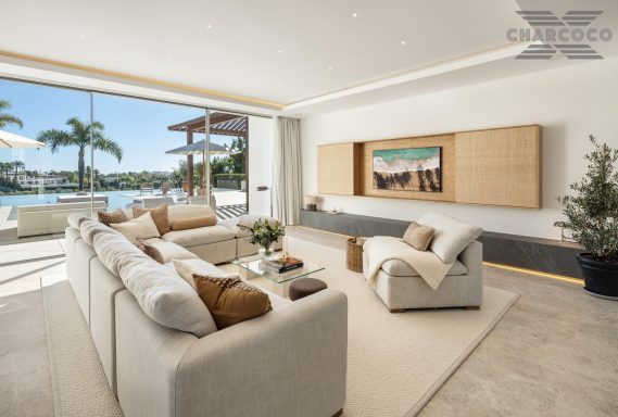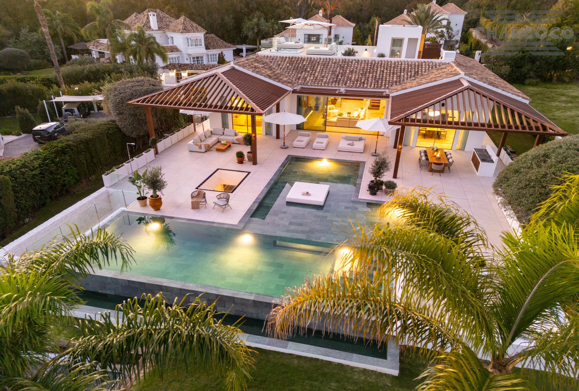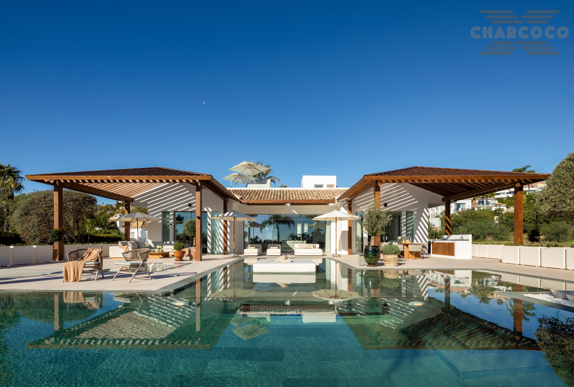 Nestled in the prestigious Golf Valley of Nueva Andalucía, Villa Olivia is a masterpiece of Mediterranean elegance infused with contemporary Balinese touches. Set on a frontline golf plot, this exquisite home offers breathtaking views of the sea, the verdant fairways, and the iconic La Concha mountain. Its seamless blend of architecture and design creates a tranquil haven, perfect for those seeking refined luxury in Marbella.