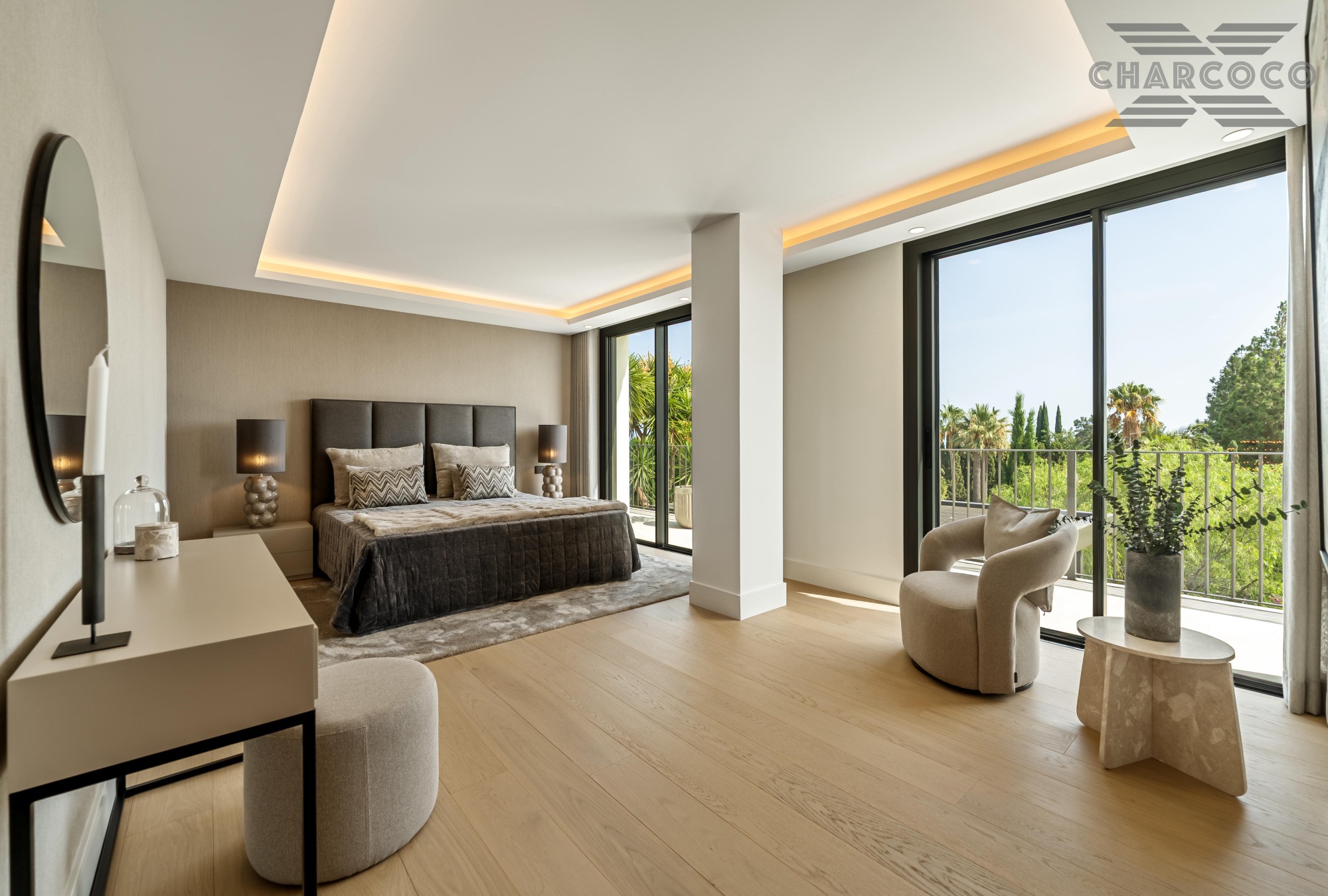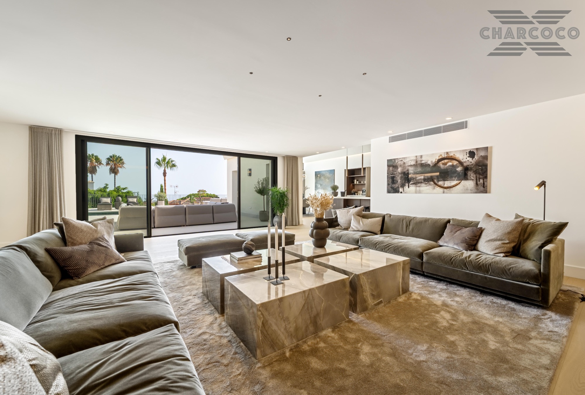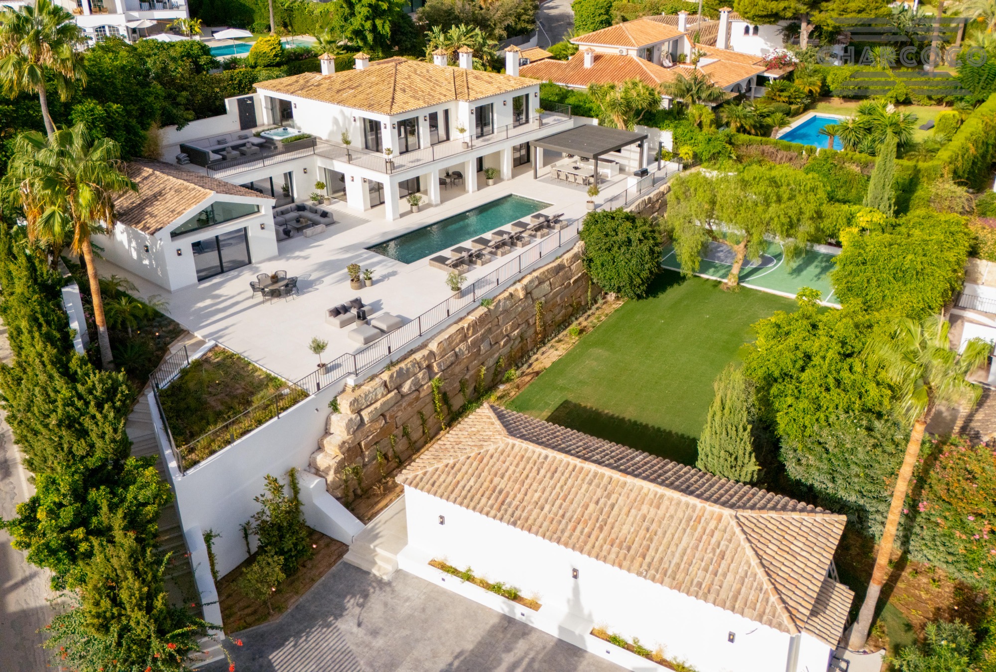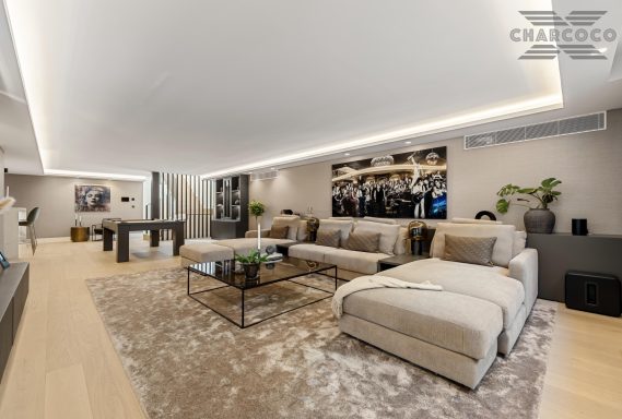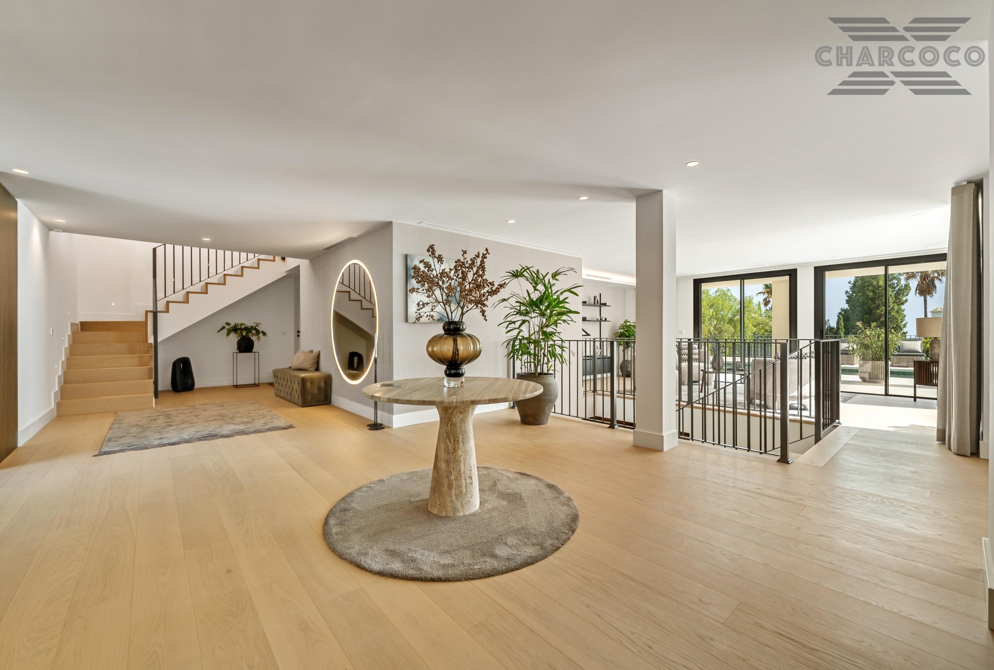 Villa Rocío is a fully renovated Andalusian-style residence located in Rocío de Nagüeles on Marbella’s prestigious Golden Mile. Set on a 1,965m2 south-facing plot beneath La Concha, the property enjoys open views of the Mediterranean. Modernised in 2025, the villa spans 734m2 of light-filled interiors, where full-height glazing, vaulted ceilings, and seamless indoor-outdoor transitions frame the scenic surroundings.