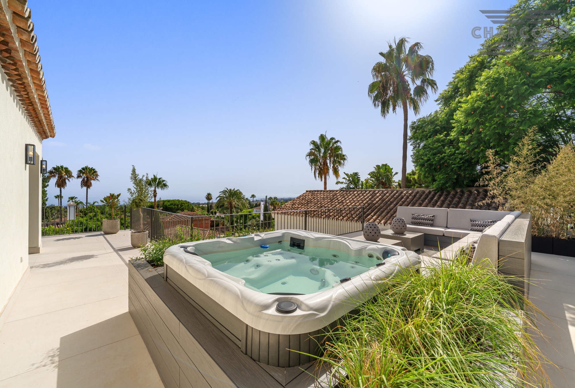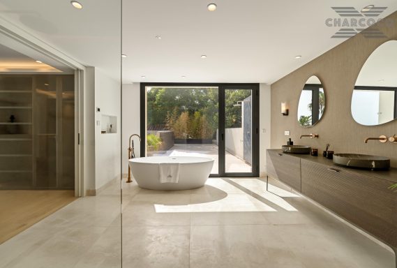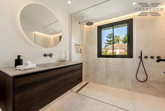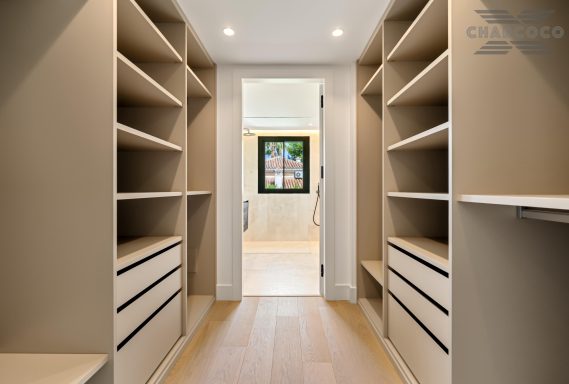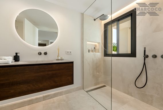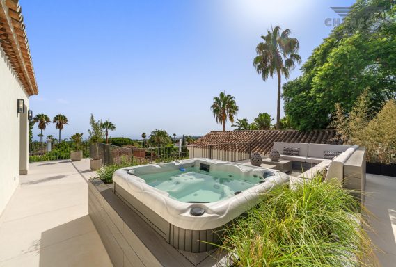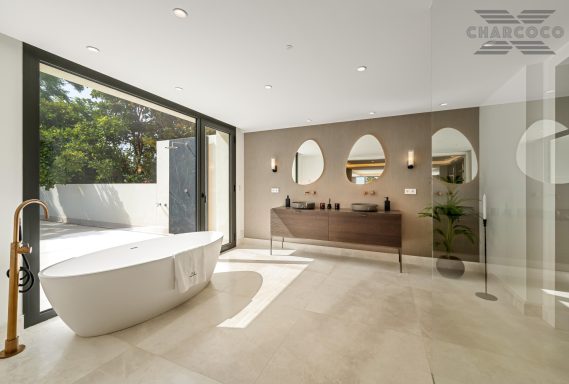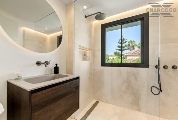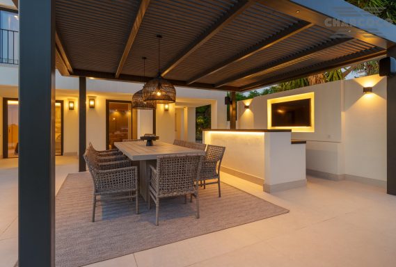 Outdoors, 456m2 of terracing surrounds a large saltwater pool, sun deck, al fresco dining area, and landscaped gardens. A covered carport behind gated access provides parking for six vehicles. Turn-key and south-oriented, Villa Rocío is just minutes from beach clubs, golf courses, and all the amenities of Marbella’s Golden Mile, delivering contemporary luxury in one of the coast’s most sought-after locations.