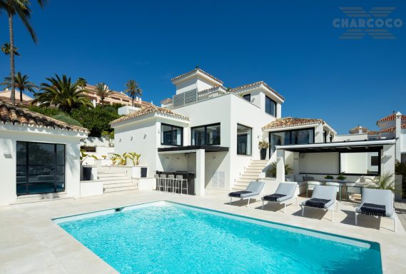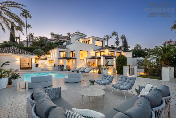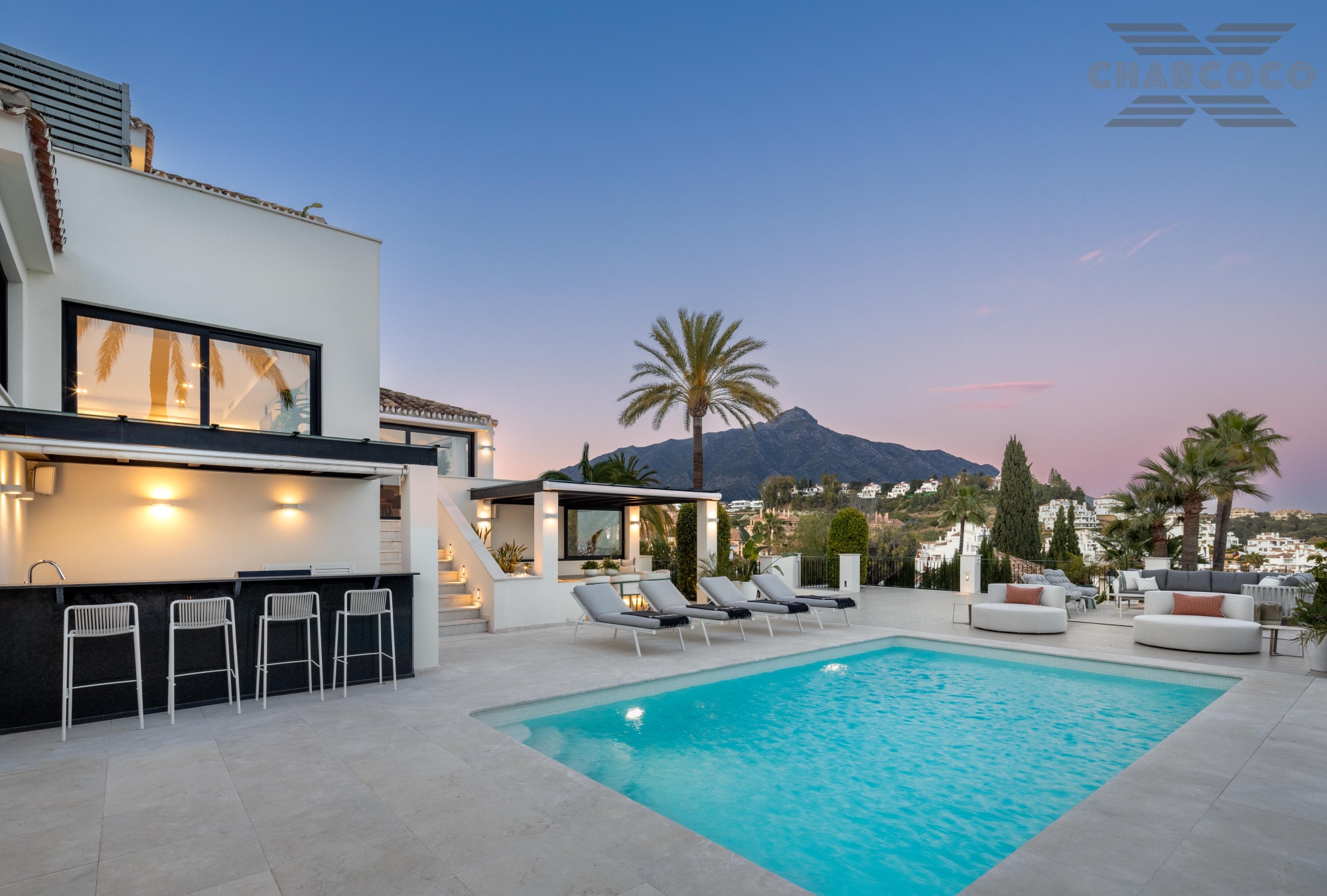 Villa Seraphina is an extraordinary newly-renovated villa boasting captivating architecture and interiors in an enviable location. Nestled within the prestigious gated community of Los Naranjos Hill Club in Nueva Andalucia, this residence offers panoramic views of La Concha mountain and the Mediterranean Sea.